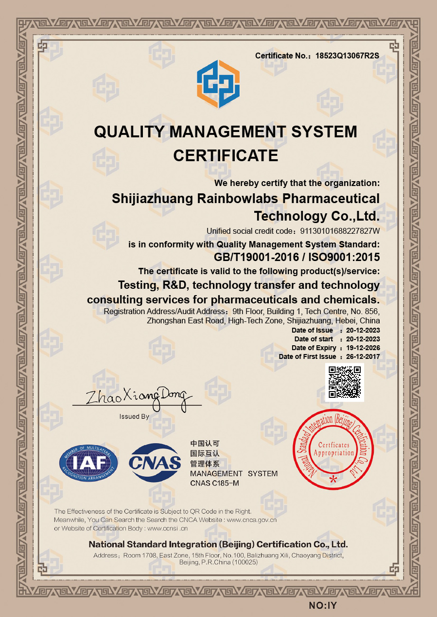 2009年润柏公司作为接轨最新国际前沿科技的高科技企业,与欧洲爱尔兰合作方共同按照国际最新标准设计、建设、成立了“润柏中欧联合实验室”。实验室不断完善质量管理体系和检测能力,历经多年发展,先后完成“美国FDA”、“加拿大卫生部”和“中国CNAS”认证,成为国内首家同时具备以上三项实验室资质的生物医药公共技术服务平台,在全球医药检测领域遥遥领先,为助力国内医药产品准入海外市场保驾护航!